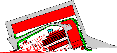 Im Bild sehen Sie die Gleisanordnung im Originalen. In dieser Zeichnung hat das SVT-Bw sechs Gleise und vor der Einfahrt an dem Gebäude befinden sich Ra 11-Zeichen, aber in der Zeichnung sind "V-Zeichen' mit den entsprechend zugehörigen Gleisen eingezeichnet. In den Bildern in den Zeitschriften aus der aktiven Zeit sind aber wie ich schon oberhalb angedeutet habe dafür Ra 11-Zeichen [Wartezeichen] an den Stellen auf der Zeichnung eben Diese anstatt der "V-Zeichen" gesehen.
