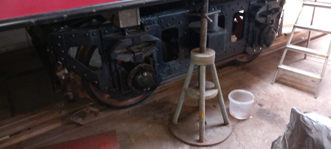 Das ist das Drehgestell des daneben stehenden Triebwagens... .Die darüber befindlichen Bilder beziehen sich auf einen "Zweiachser". Das kann man so noch nicht direkt sehen, weil beide Triebwagen sehr eng stehen und Detailfotos davon noch fehlen. Diese werden später noch nachgereicht!