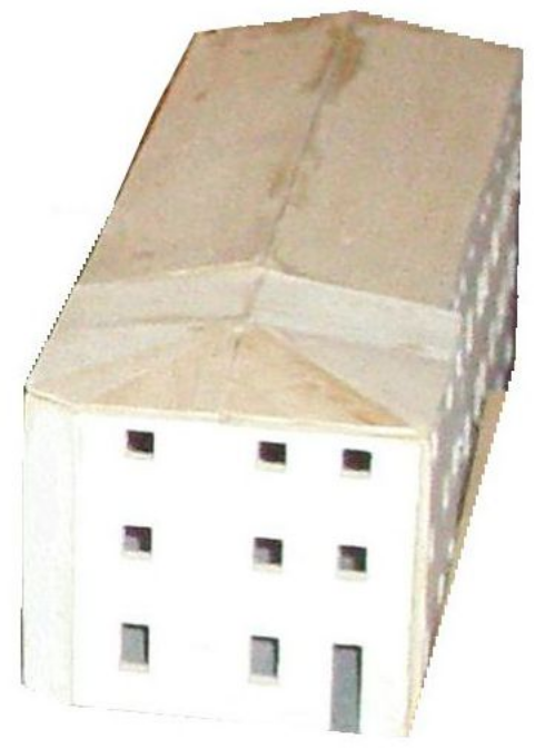 Mein erstes provisorisches Bauergebnis ohne Fenster, Türen und Treppen wurde mittels Balsaholz mit eine Dicke von 10mm erstellt.